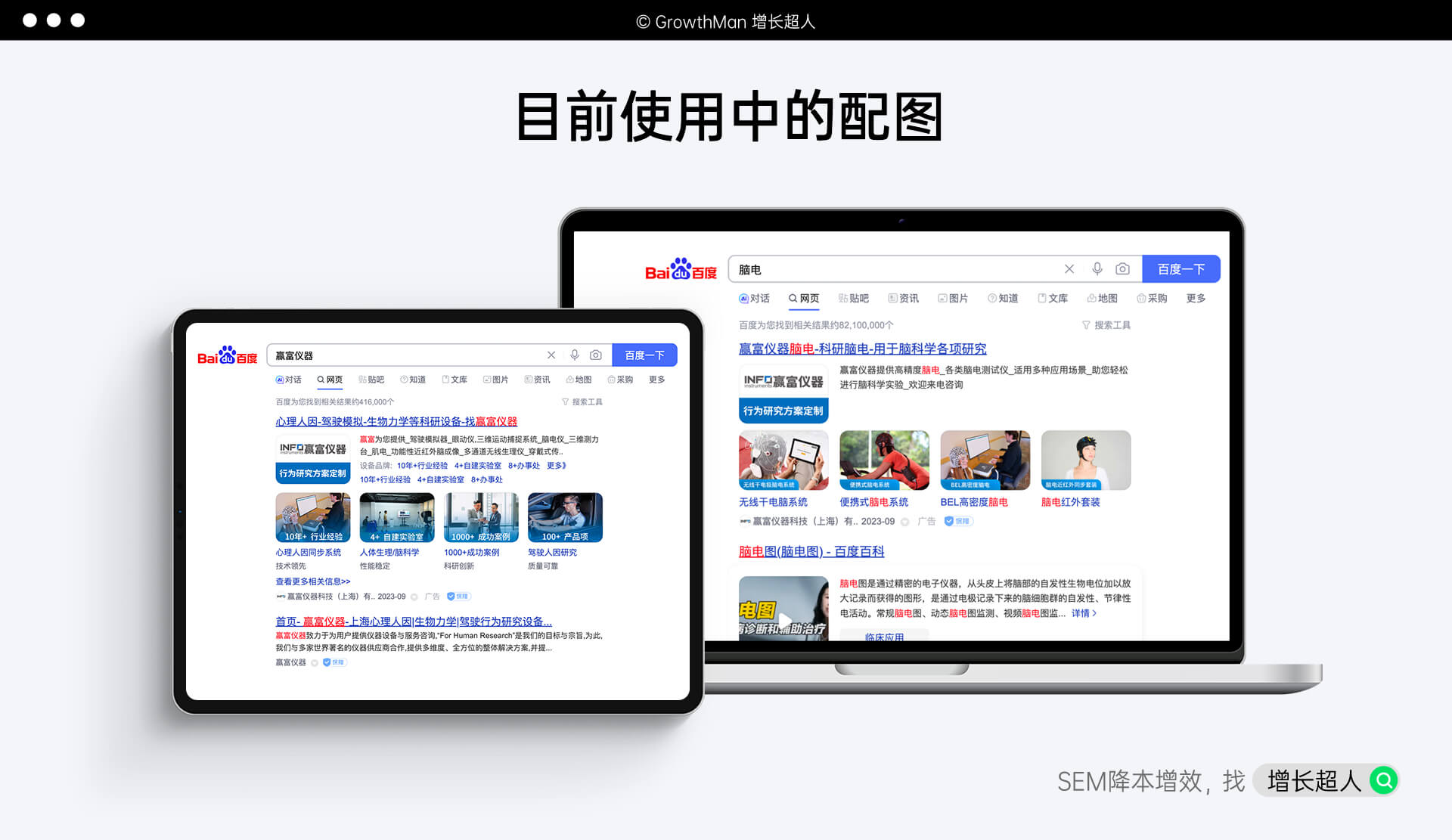 赢富仪器原先的广告创意没有很好适配各个流量方向,在某些条件下容易出现访客对创意理解不清晰,难以转为一些客户的情况,为此我们以创意配图为主,对其广告创意进行全面优化调整: