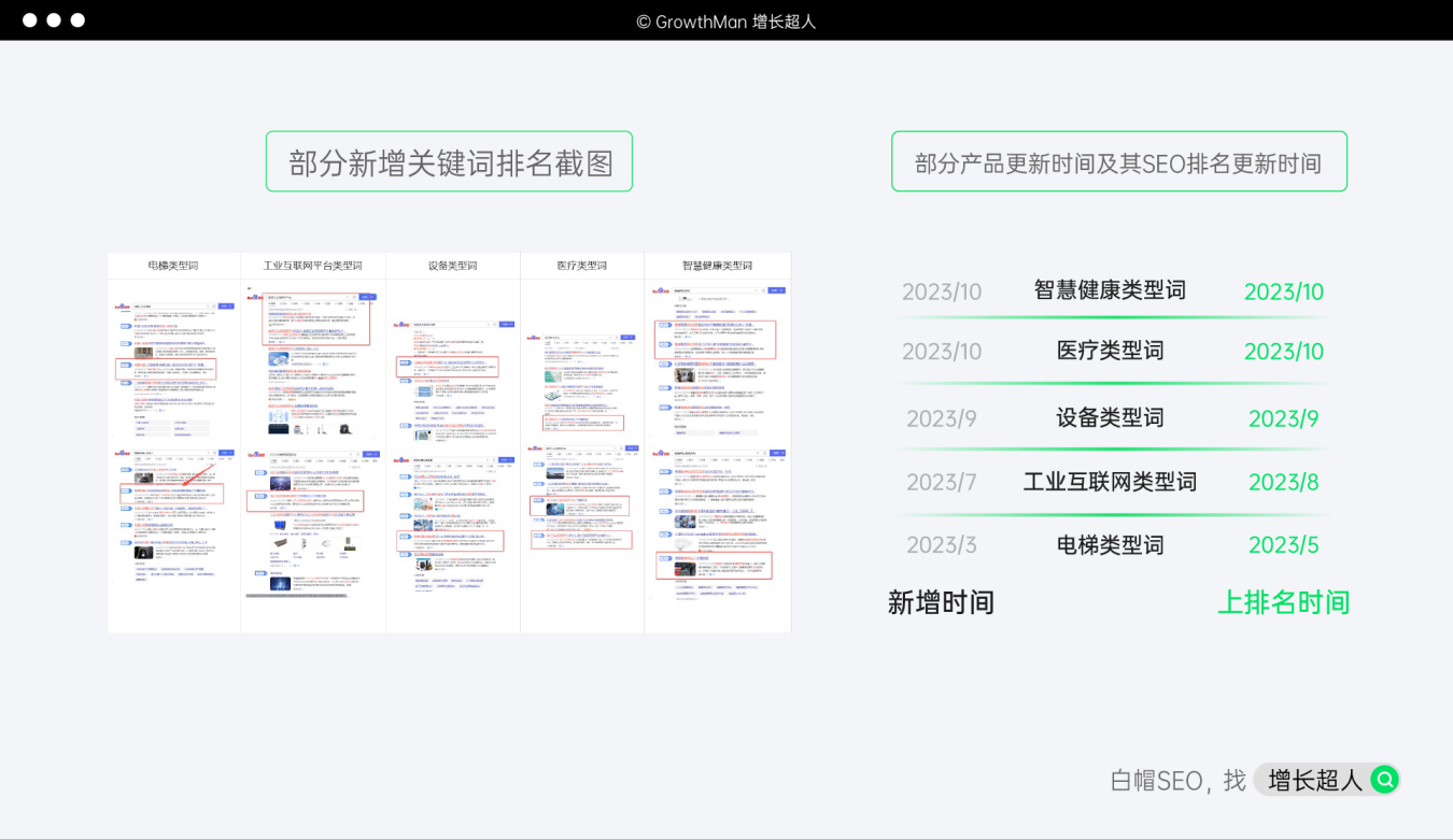 鲁邦通的业务类型比较多,涉及行业广,产品更新频率也很高,对结果的需求比较急,这要求我们跟着鲁邦通产品更新的节奏,同频更新关键词优化词组,并且同时保证每次更新的关键词词组都能高效反馈排名成果。除了对结果要求比较急外,词组的更新频率也在不断加快,例如:我们一开始接收项目时是每月更新一次词组进行优化,到了半年后便过渡到了每周更新一次词组进行优化。
