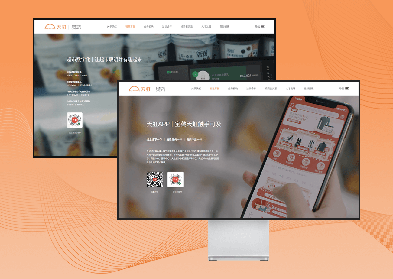 天虹零售行业数字化转型正在如火如荼的进行,产品线的扩张让目标客户发生了变化,反观消费人群对天虹的印象,仍然停留在天虹仅是一家老牌的实力零售国企的形象,天虹这次找到我们进行官网改版,目的就在于此——在保留品牌DNA的同时,实现新业态的呈现升级,向市场展示一个崭新的天虹。