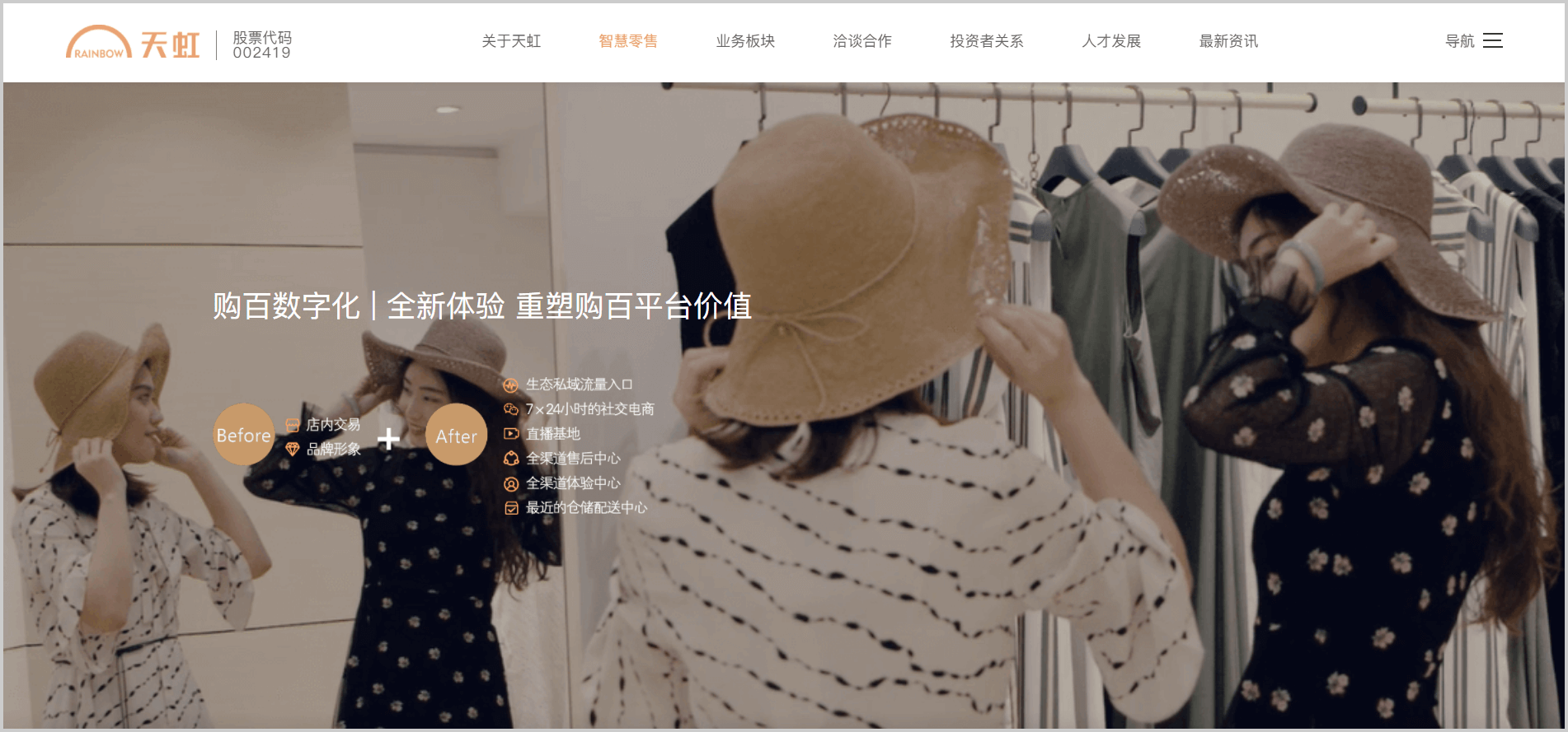 在【购百数字化】的说明中,展示了天虹“Before+After" 的数字化运营模式,向访客充分说明天虹从智能方面寻求新的突破。