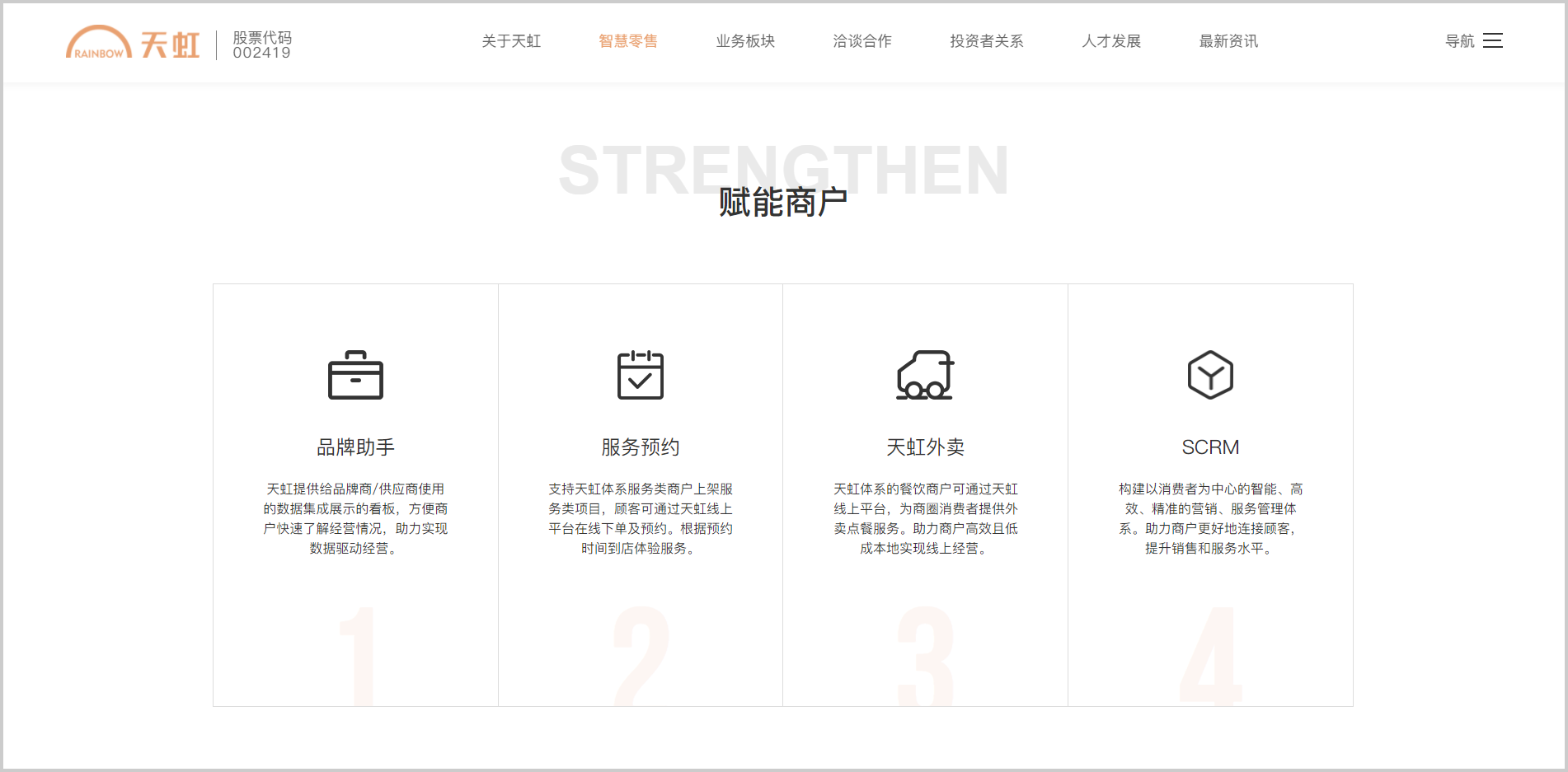平台业务:天虹在自己构建的平台上为商户提供各种经营工具及服务管理方案;