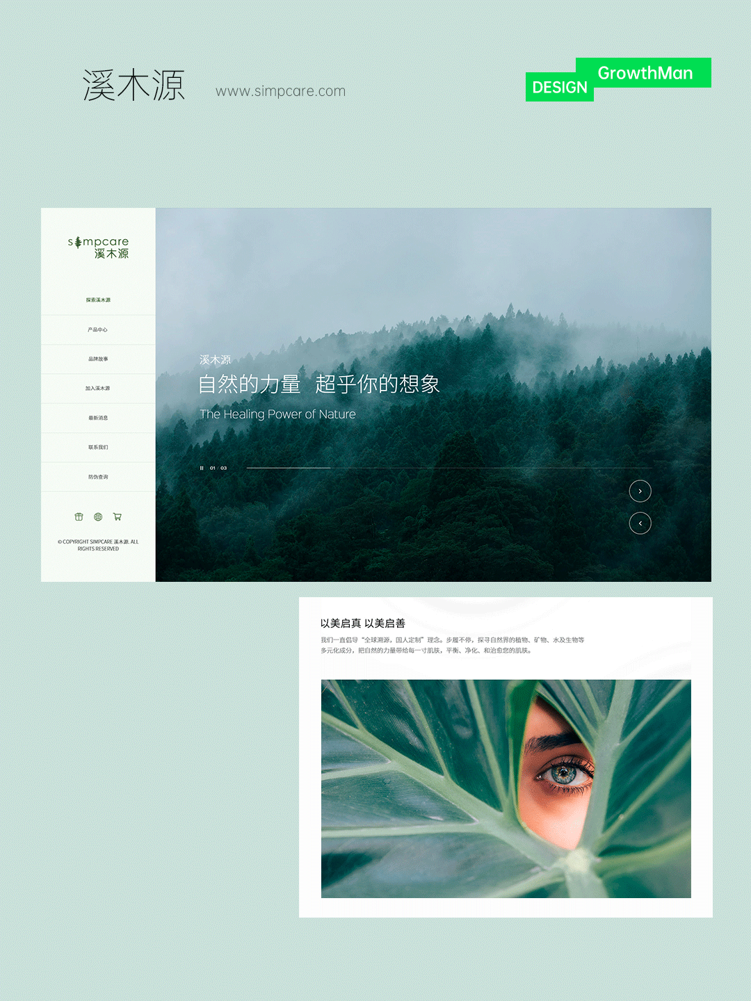 溪木源Simpcare是诺德溯源(广州)生物科技有限公司旗下功能性自然护肤品牌,针对亚洲敏感肌人群提供专业护理。根据品牌调性,企业想强调“自然”的风格理念。在偶然的机会找到增长超人,希望通过网站改版,更好地展示公司形象。