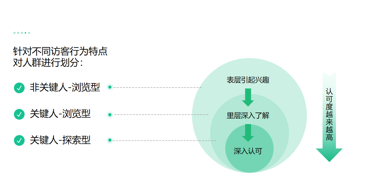 我们将溪木源的访客群体进行划分,分为了三种不同类型的群体:非专业浏览者、专业浏览者与专业探索者。根据客户给的资料,我们进行内容提炼与内容层架划分,根据访客不同的阅览习惯,我们设计了不同的展现形式,从浅至深逐级呈现,挖掘出精确的潜在客户用户画像,最终达到更好的信息传达效果,为溪木源很好地打造了差异化的品牌内容。