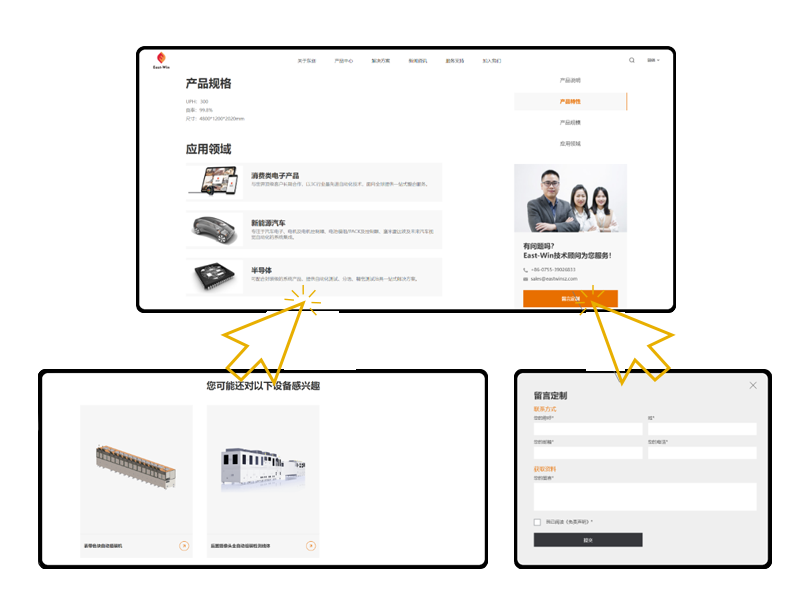 东创新官网在用户交互体验上的最大亮点在于,当你从产品设备页面再次返回到官网首页时,网站会主动记录你在产品设备页面上的浏览结果,并贴心地询问你是否对刚刚看过的产品仍感兴趣。