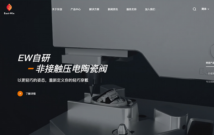 对于制造业的网站建设,视觉层面突破的最大难点无疑是颠覆传统枯燥的企业形象,常规的图文方式太生硬,无法给访客留下深刻的印象。于是我们采用短视频,直接将东创自主研发的明星产品(非接触压电陶瓷阀),通过视频的形式展示了出来,直观地让访客感受并留下记忆点,首先就从视觉上对访客形成品牌的冲击力。