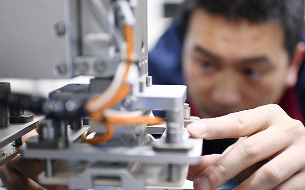 企业实力的另一种体现当然就是创新和研发能力,所以我们同样采用了一段流畅的机械操作短视频来托出联合东创实验室。