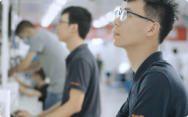 我们有意在不同版块穿插了摄影师真实记录的东创员工图片素材。依靠人物表情与场景策划保证了拍摄质量,更好地还原了东创团队专注、自信、温暖的工作状态,这些会给访客充足的安全感,让他们知道东创团队是值得信赖的。