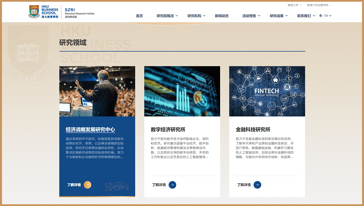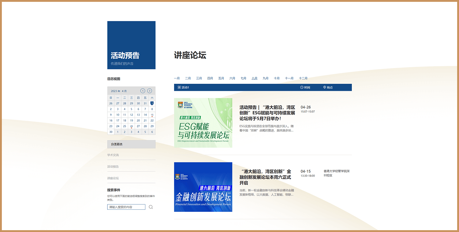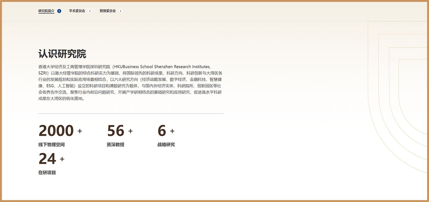 整个项目中,我们始终以满足港大需求的同时,结合了我们调研200+所国内外高校后的定调,帮港大建立一个富有浓厚学术气息和校园风采的经管学院深圳校区官网,港大非常满意我们的设计出品和落地成果。