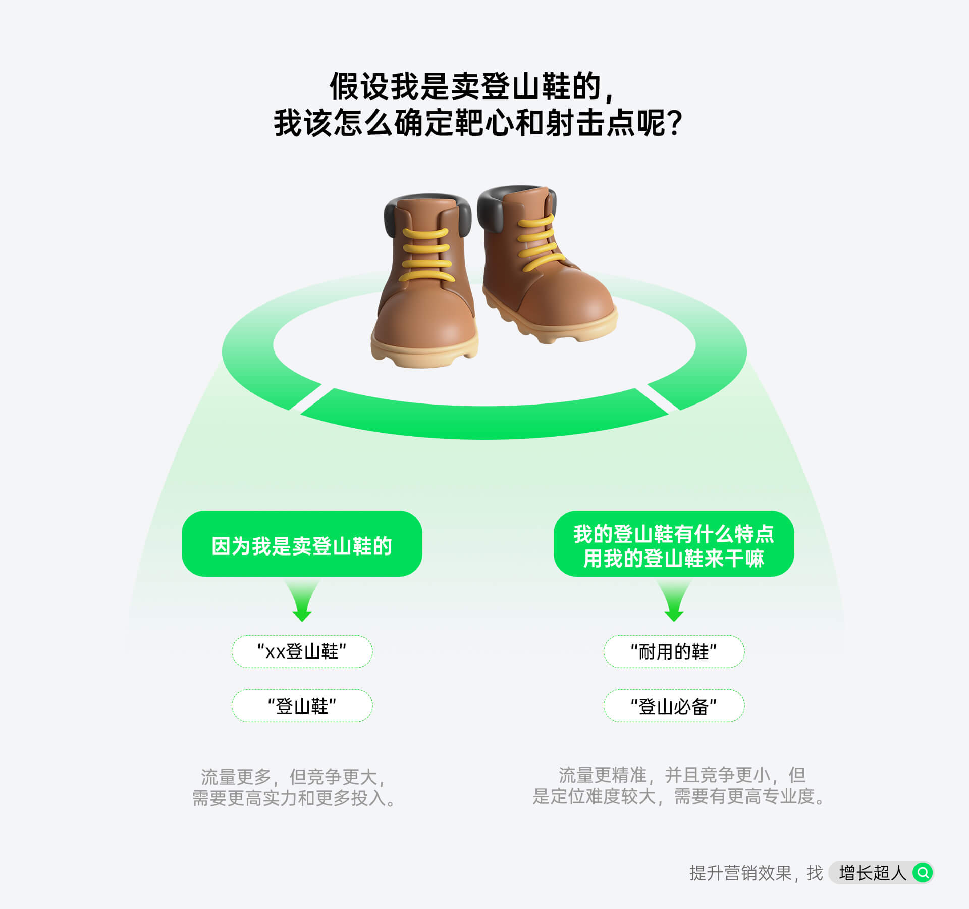 我们将营销比作战场射击,目标客户是靶心,射击点则是关键词。该怎么找到靶心和射击点?