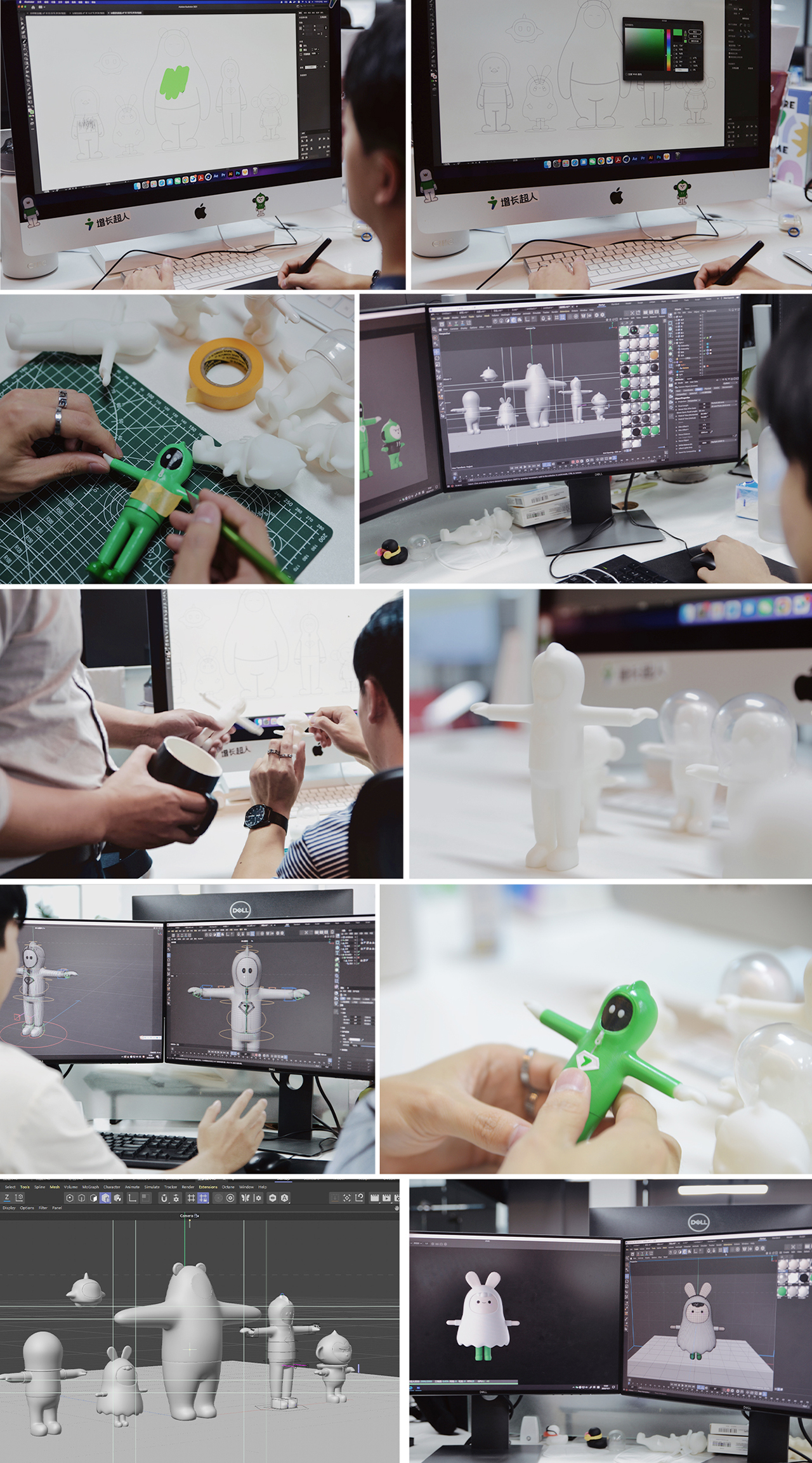 动物形象具有天然的亲和力,能够更好地传递温暖和品牌感知力。通过不同职能的成员与动物相结合,我们可以创作出激发观众的兴趣与好奇心的形象。例如,空空结合猴子的形象可以展现出机智和灵活的特质,迪仔结合小鸡则可以传递出创意和独特的观点,皮皮结合大熊则呈现出可靠和稳重的形象,哈比结合兔子则展示出活力和灵活性,菲特结合机器人则体现出智能和高效。