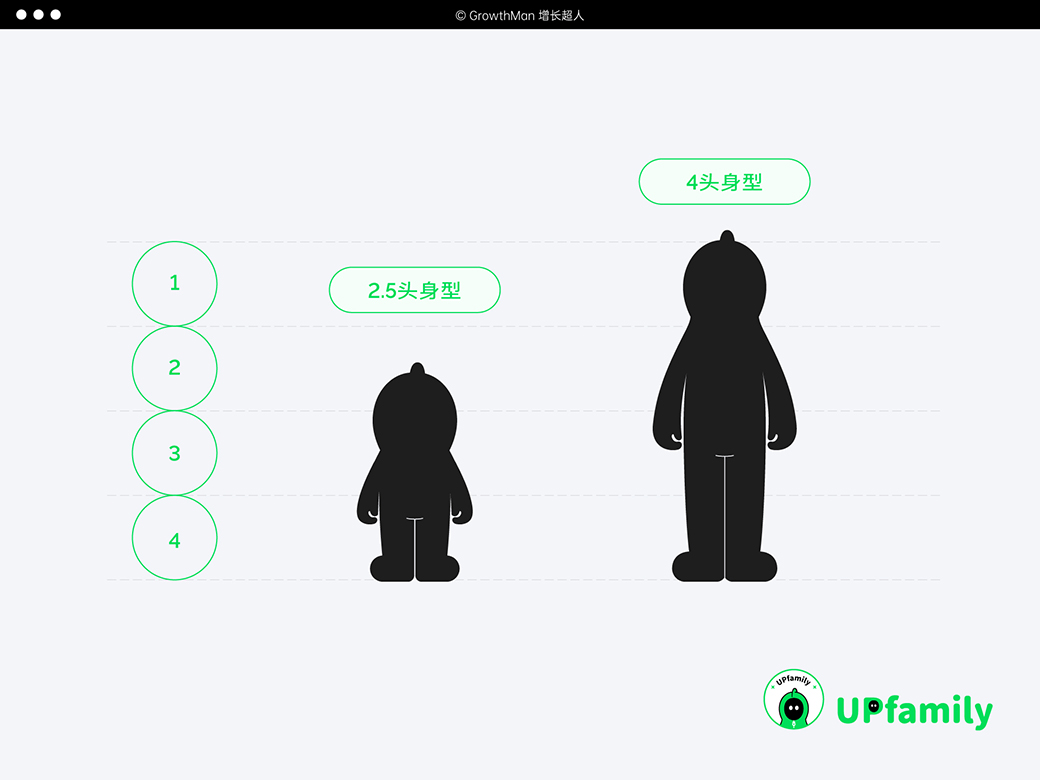 在身型设计上,为了设计出更符合年轻、活力的超人形象,我们在头身比例上做了大量的对比,2.5头身虽然是普遍的ip头身比例,受众接受程度高,形象可爱,但用在大超的定位上较为低幼。7.5头身的成年身型比例较为成熟,但缺失了部分亲和力,我们在尝试多种比例之后选择4头身的比例,这样的身型比视觉上稳重靠谱,元气满满并且充满机动性。