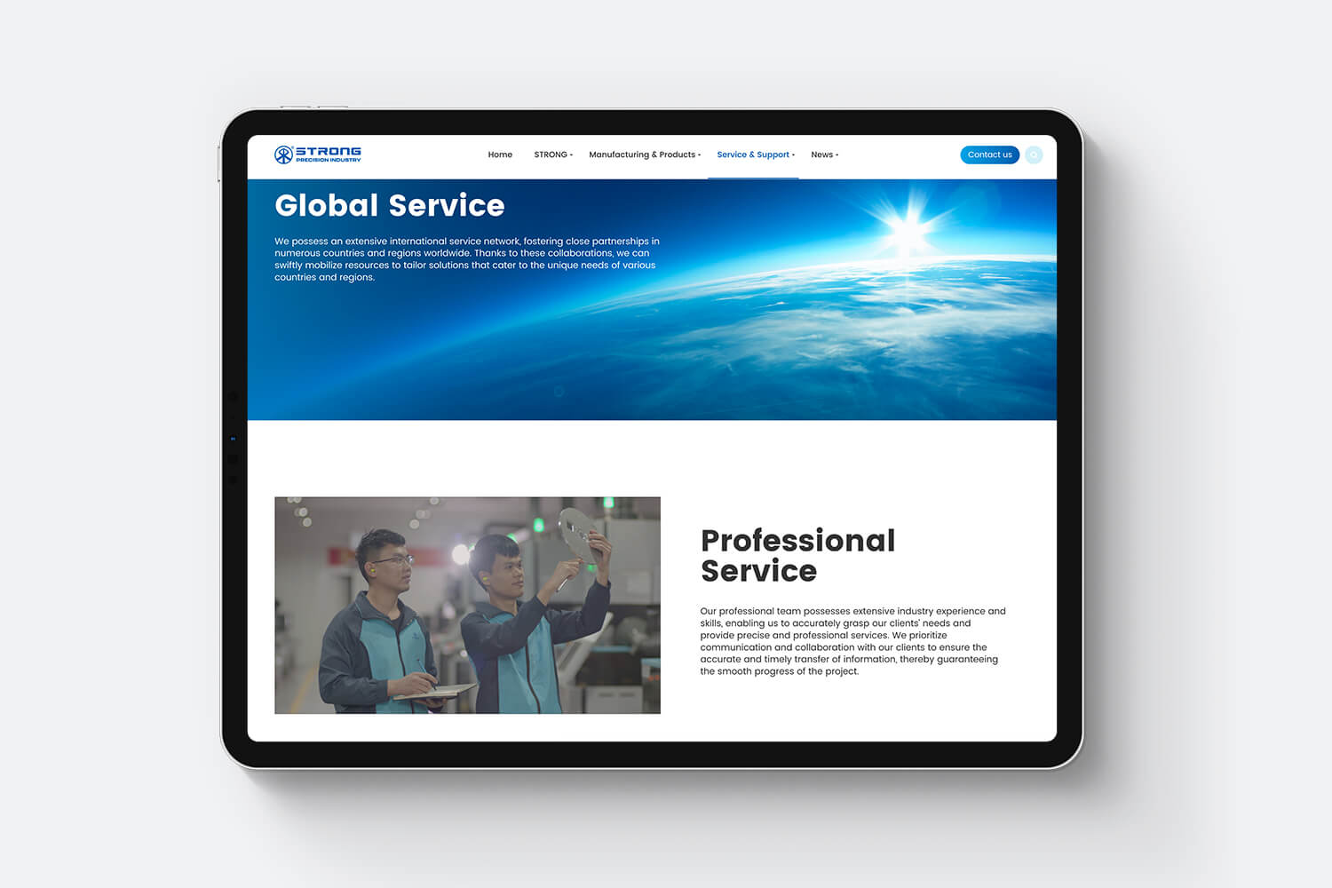 比如在传统制造企业官网中,我们可以在banner中尝试加入大胆的3D设计元素,颠覆行业中传统的展示形式,将核心产品和业务进行拆解,运用精细的设计,把产品核心竞争力从细节展现出来,形成与同行的差异化表现。